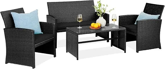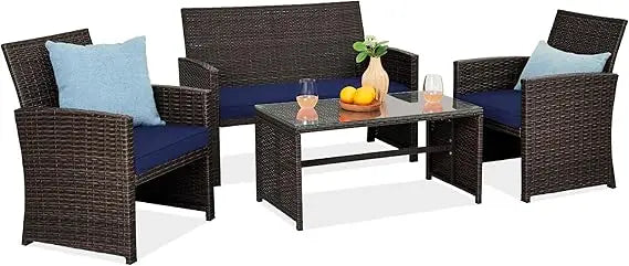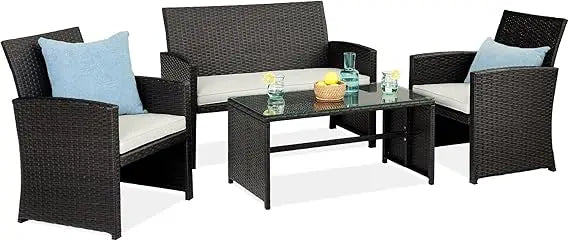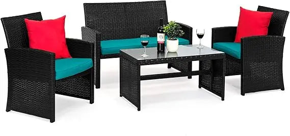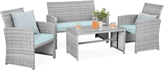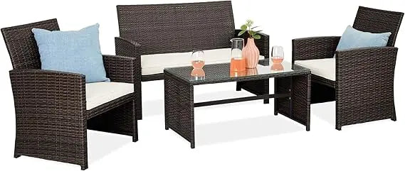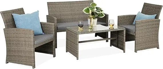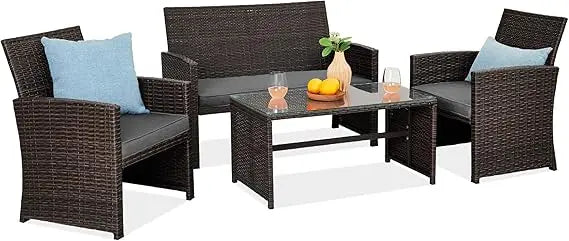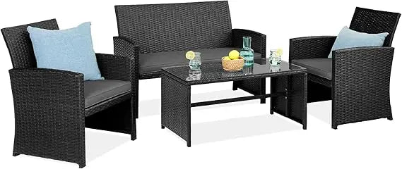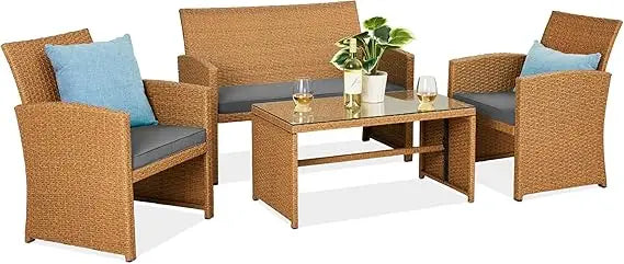 4-Piece Outdoor Wicker Patio Conversation Furniture Set