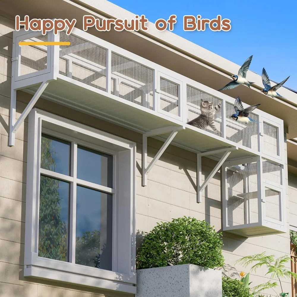 - 【Expandable Multi-Cat Haven with Tunnel Access】 Create a personalized outdoor cat tunnel paradise! With catio window connects to additional units via catio window access points, forming L-shaped or extended play spaces.