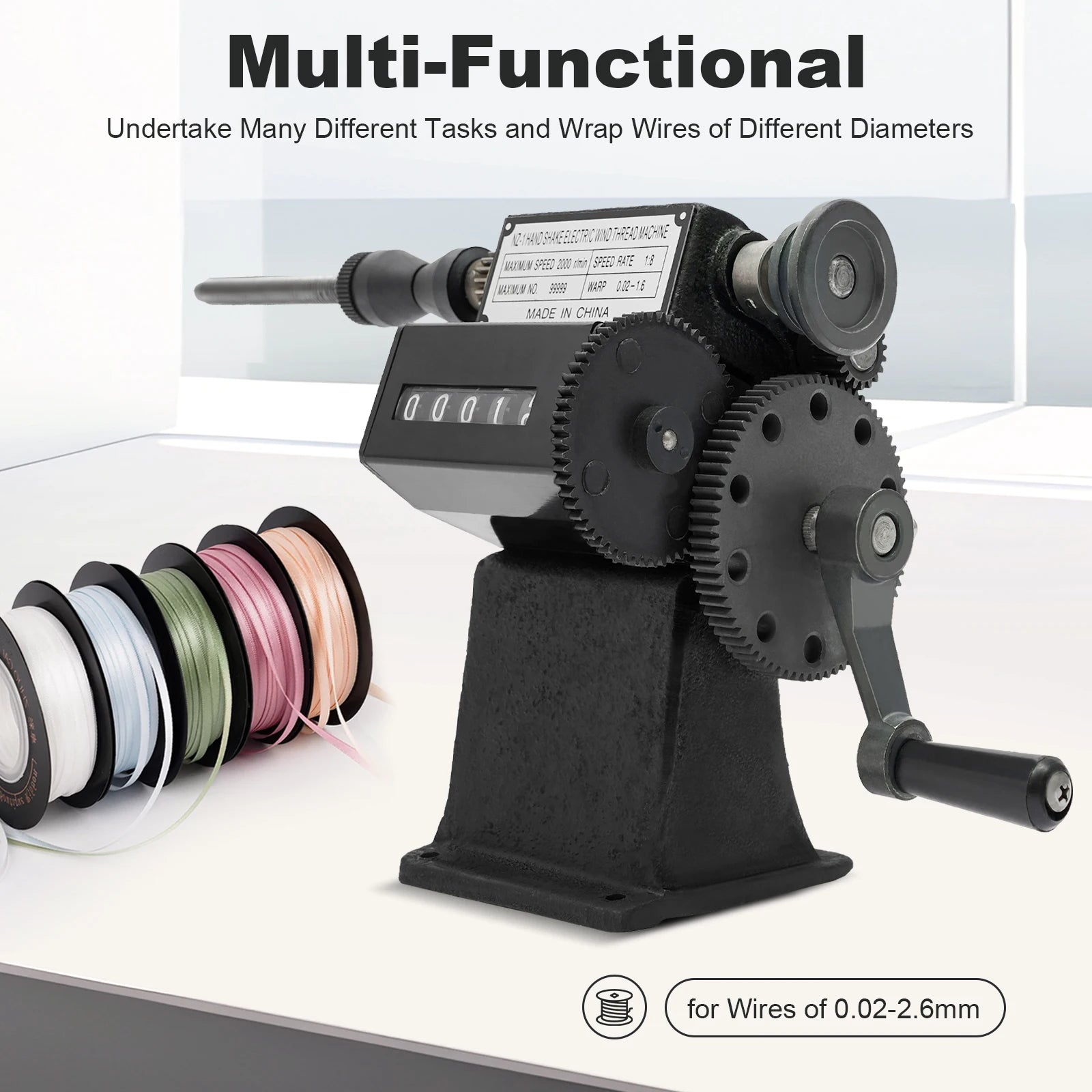 Fishing Line Spooler with Counting Machine, 0-99999 Count Range, Cast Iron Frame, Max Diameter 150mm