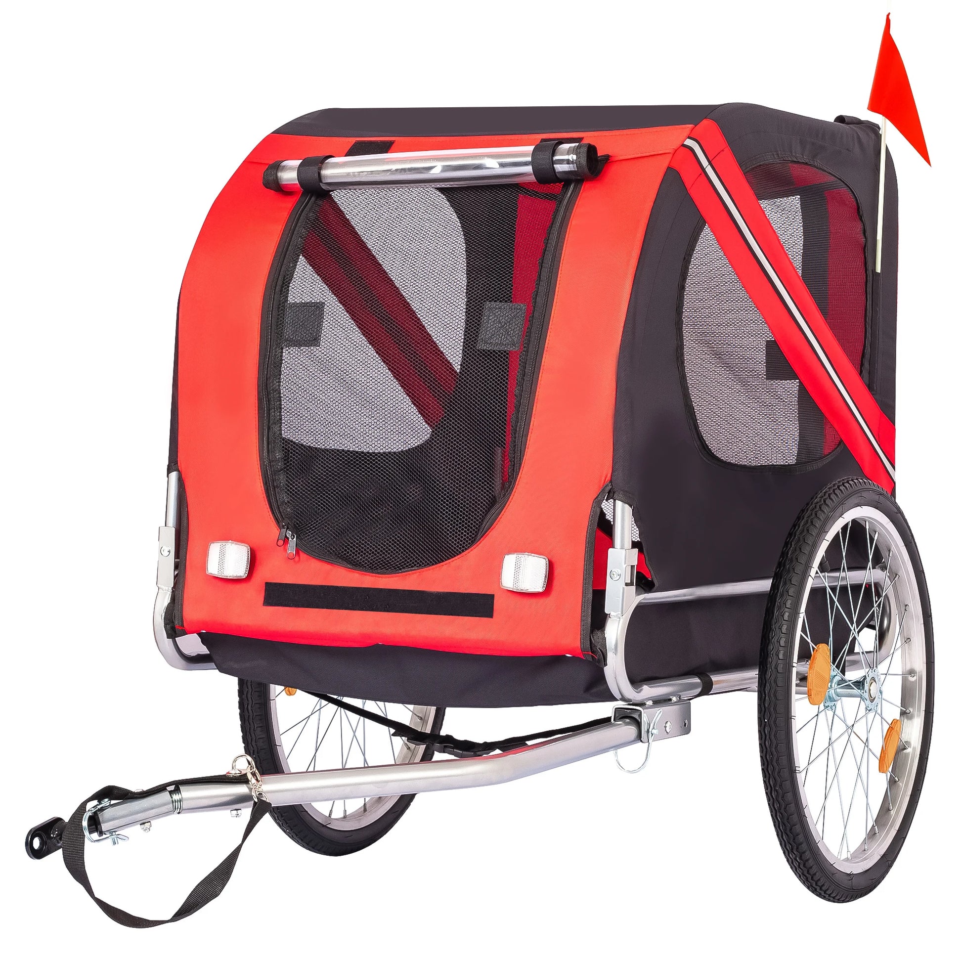 【Safe, Sturdy Ride for Your Furry Friend】Give your pet the comfort they deserve with this premium bike dog trailer! Built from a tough carbon steel frame and durable 600D Oxford fabric, it keeps pets up to 88 lbs secure on every adventure. The padded interior softens shocks, while the semi-open design lets them enjoy fresh air and scenery without risk. Perfect for daily rides or weekend trails—your pup will love the safe, cozy journey!